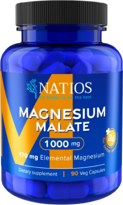Nejlevnější nabídky NATIOS Magnesium Malate 1000 mg + B6, (elem. hořčík 170 mg), 90 kapslí